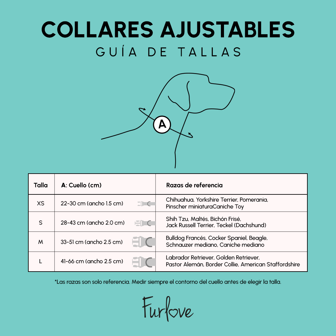 XS: cuello bajo 29–36 cm | pecho 36–48 cm | ancho 1,5 cm